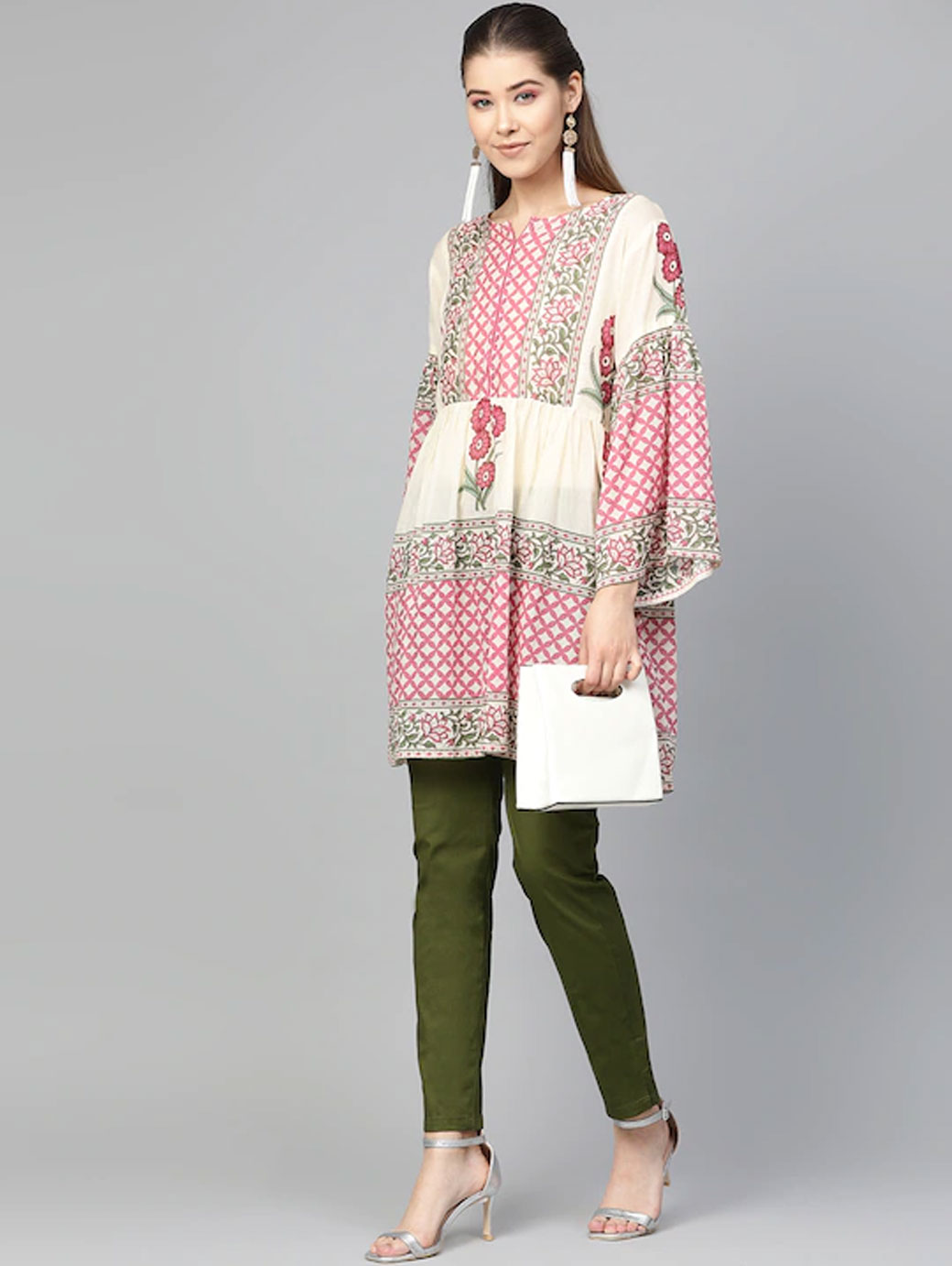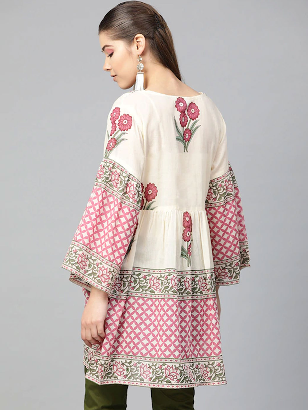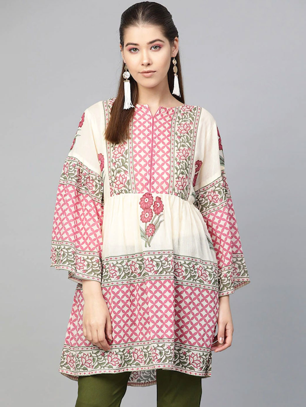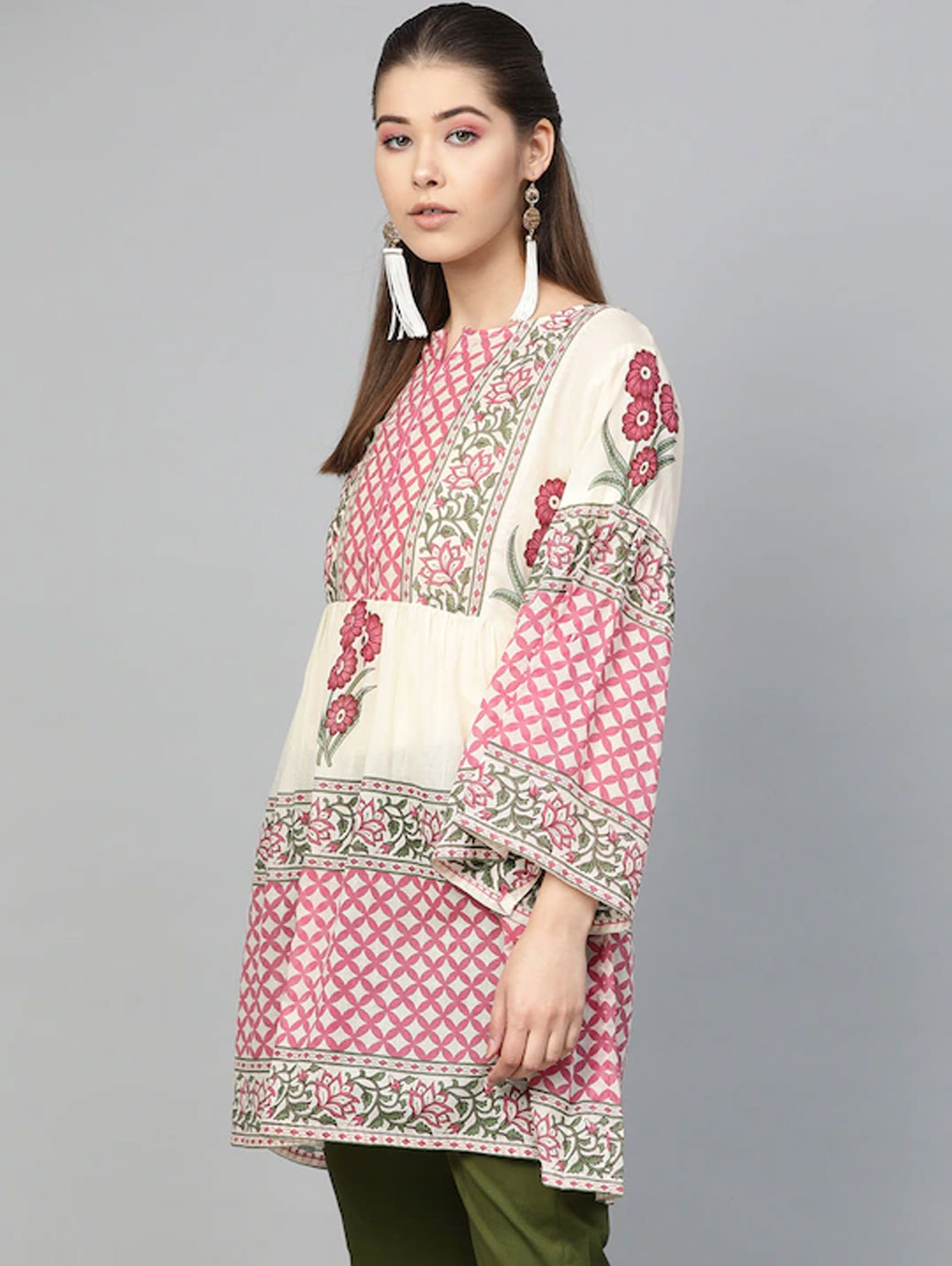 Beige and Pink printed Tunic