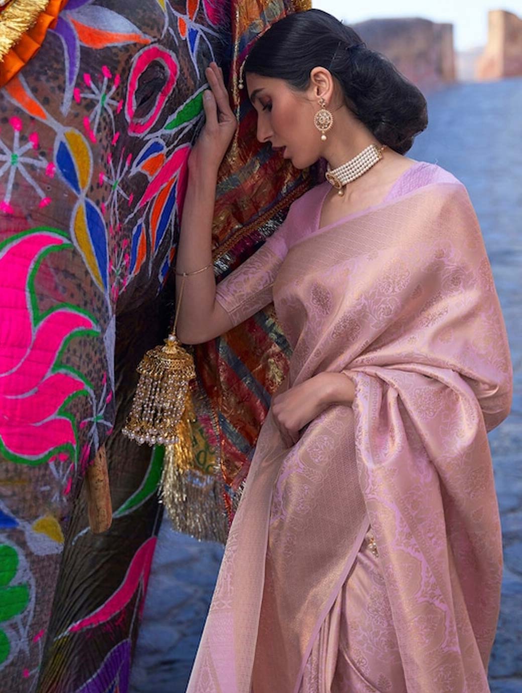 Lavender and gold-toned banarasi saree