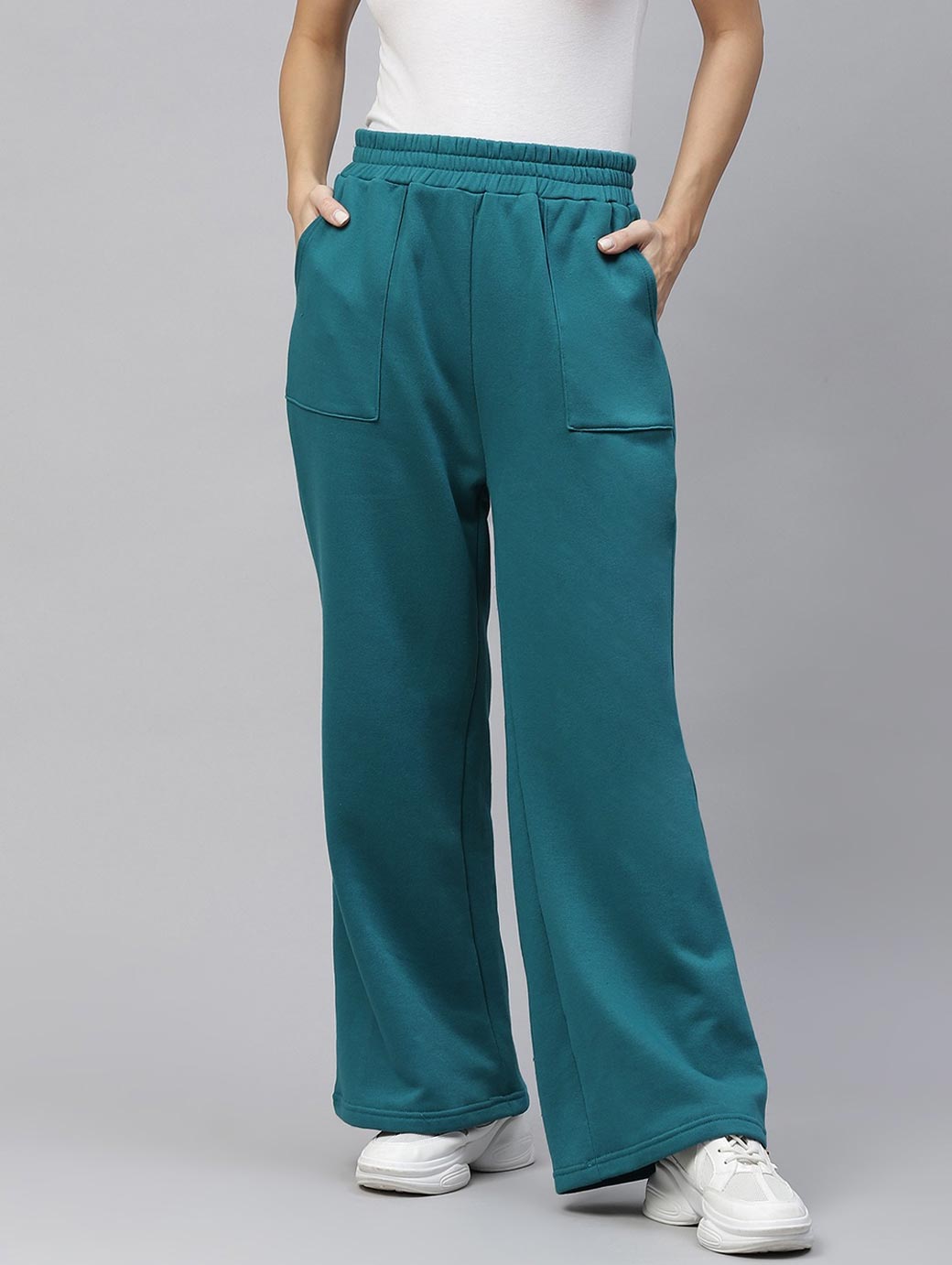 Women Teal Blue Solid Track Pants