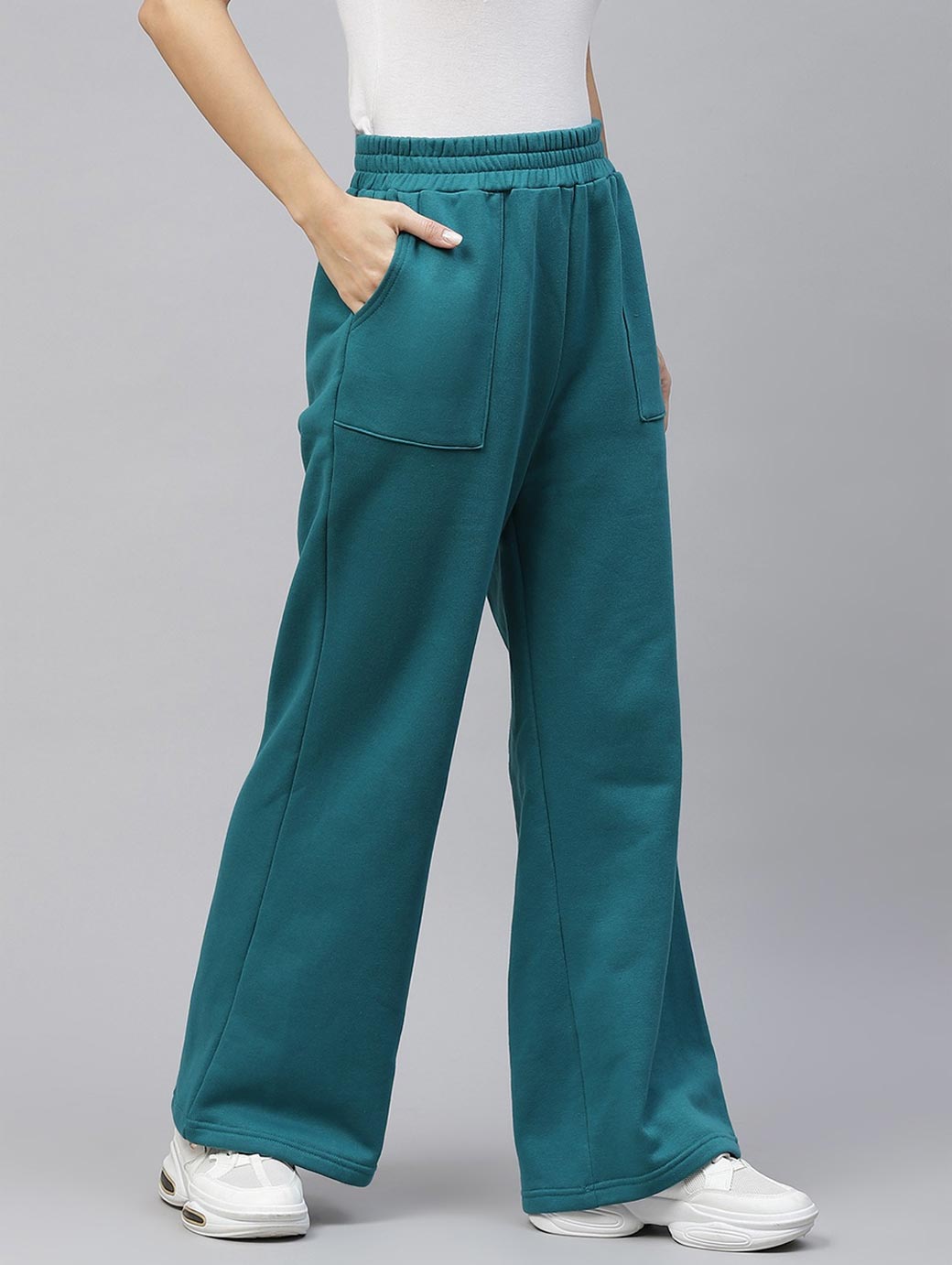 Teal blue solid track pants, has an elasticated waistband with slip-on closure and 2 insert pockets